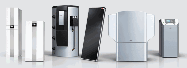 Öl- oder Gasbrennwertgeräte, Biomassekessel und Wärmepumpen für Sole oder